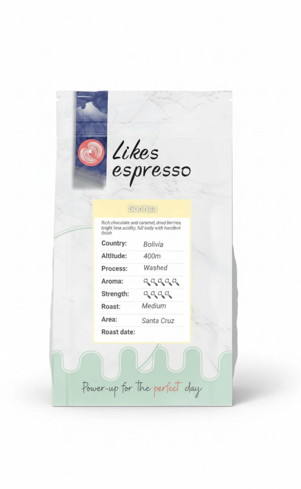 Deze specialty coffee uit Bolivia staat bekend om zijn milde, frisse zuurgraad, een medium body en een elegant smaakprofiel. In de kop proef je heldere tonen van rood fruit en karamel, aangevuld met subtiele cacao en een lichte kruidige afdronk. De smaak is mooi gebalanceerd en toegankelijk, maar met genoeg diepgang voor de echte koffieliefhebber.